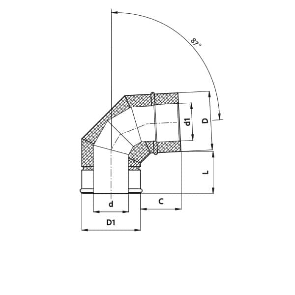 Element used to change the direction of the smoke flow at the boiler connection. Angle 87°.
