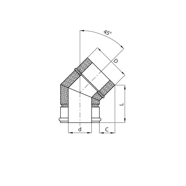 Element used to change the direction of the smoke flow at the boiler connection. Angle 45°.