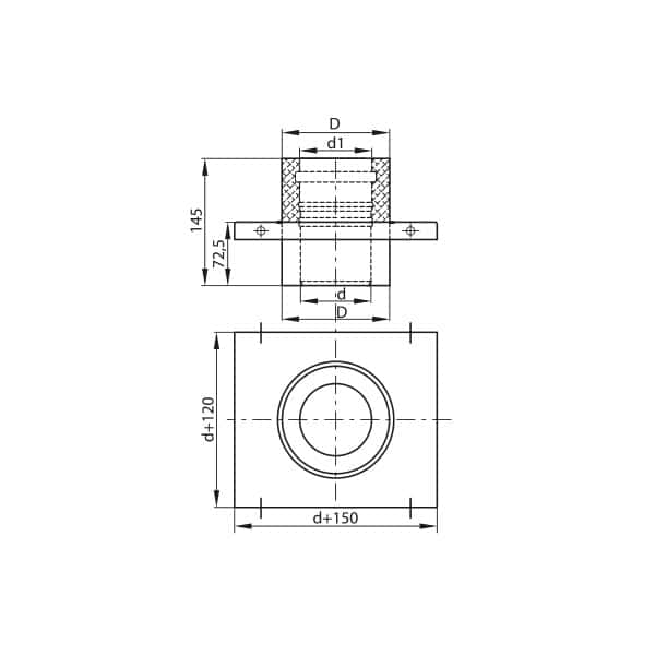 Element absorbing vertical forces from the chimney elements, which transfers the loads to the wall in order to take the load off the elements located below. Mounted on supports. It enables the transition from a WSPS type system to an SPS type insulated chimney. Used every 10 m.