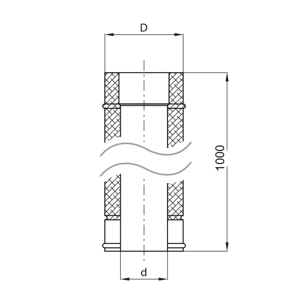 Round pipe welded with the use of the plasma technique, used to construct straight sections of the chimney liner. The elements are connected with the use of socket ends (60mm – muff) enabling the liner’s free dilatation. Length – 1 m.