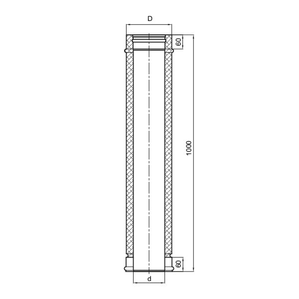 Round pipe welded with the use of the plasma technique, used to construct straight sections of the chimney liner. The elements are connected with the use of socket ends (60mm – muff) enabling the liner’s free dilatation. Length – 1 m.