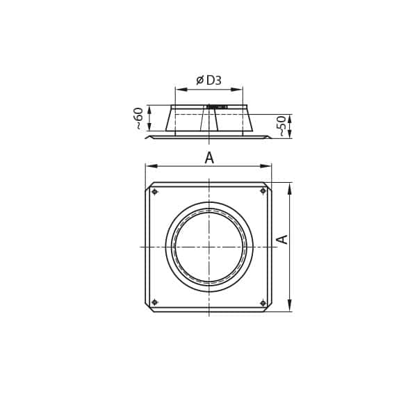 Chimney plate with additional rain protection, used as the ending of the chimney liner, covering the opening of the brick chimney.