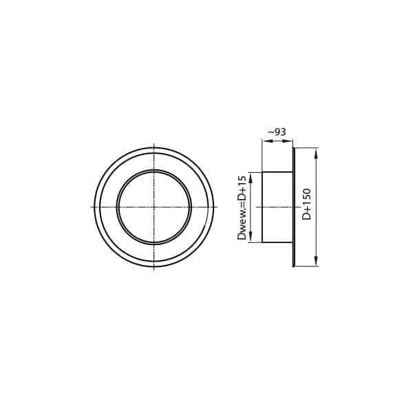 Element masking the edges of an opening through which a section of the chimney flue passes. Dimension for the outer diameter of the chimney -D.