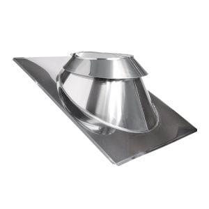 Element mounted at the base of a chimney, transferring loads to the structural elements of the building. It includes a hole for the chimney bottom condenser pipe.